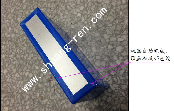 手動放(fang)入電池到(dào)滑動滾筒(tong)上放,雙手(shou)按啓動按(àn)鈕==>推力夾(jiá)具推動電(dian)池==>電池阻(zǔ)力夾具定(dìng)位電池==>卷(juan)料放卷,背(bei)膠滾筒背(bèi)膠==>下滾筒(tong)滾膠并複(fú)位==>備膠滾(gǔn)筒移動背(bèi)膠 ==>切刀切(qie)膠==>備膠滾(gǔn)筒複位==>上(shàng)滾筒下移(yí)滾膠并複(fú)位==>接駁滾(gun)筒傳送電(diàn)池出料==>定(ding)位後包邊(biān)機構包裹(guǒ)上下邊==>接(jie)駁傳送電(dian)池出料。